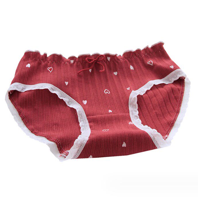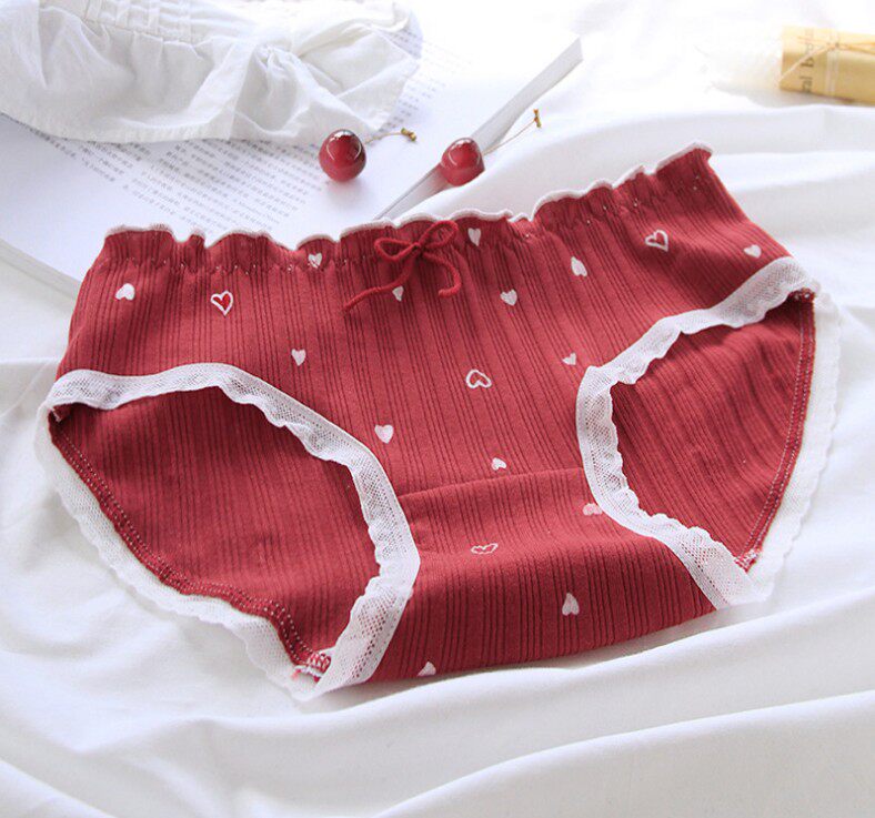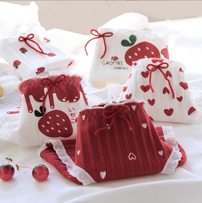 爱心草莓大红色木耳边少女女士内裤纯棉裆中腰三角裤女生内裤包邮