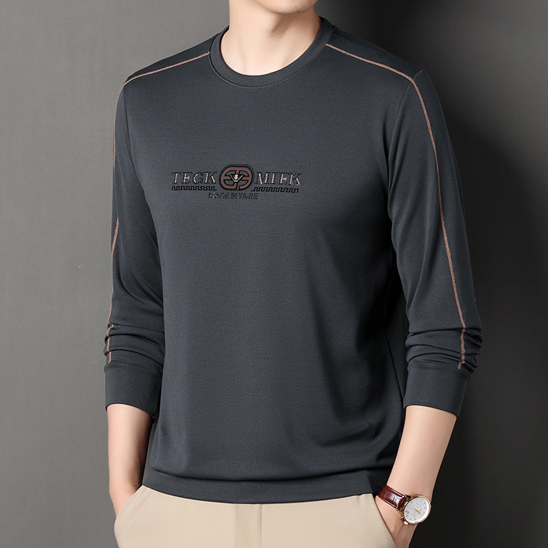 春秋男装宽松圆领卫衣男士长袖t恤衫上衣2023新款保暖套头打底衫