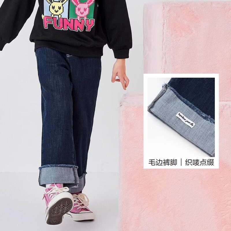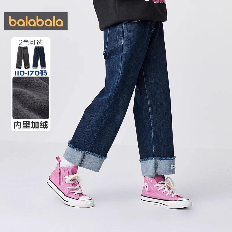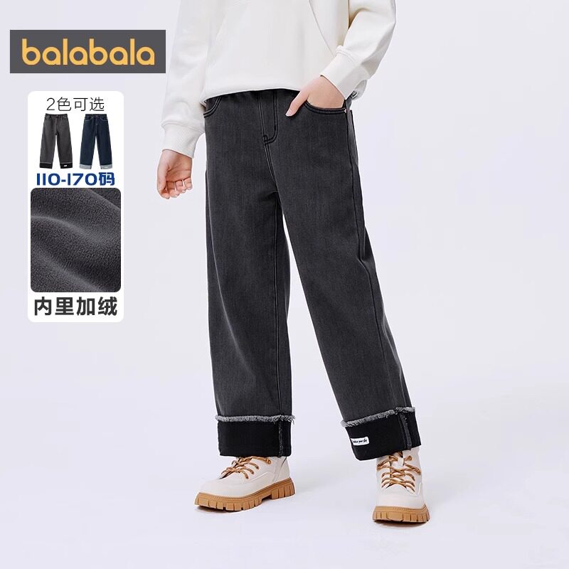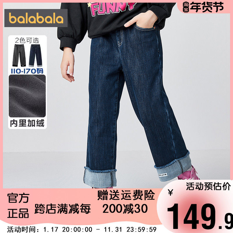 淘宝品牌童装正品折扣商城店,巴拉巴拉女童牛仔裤加绒裤子中大童冬装2023新款童装儿童阔腿裤厚