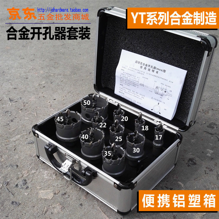 淘宝兆龙百货旗砚店,扩孔钻套装 不锈钢钻头硬质合金开孔器10件套铝塑盒装17-50金属钻