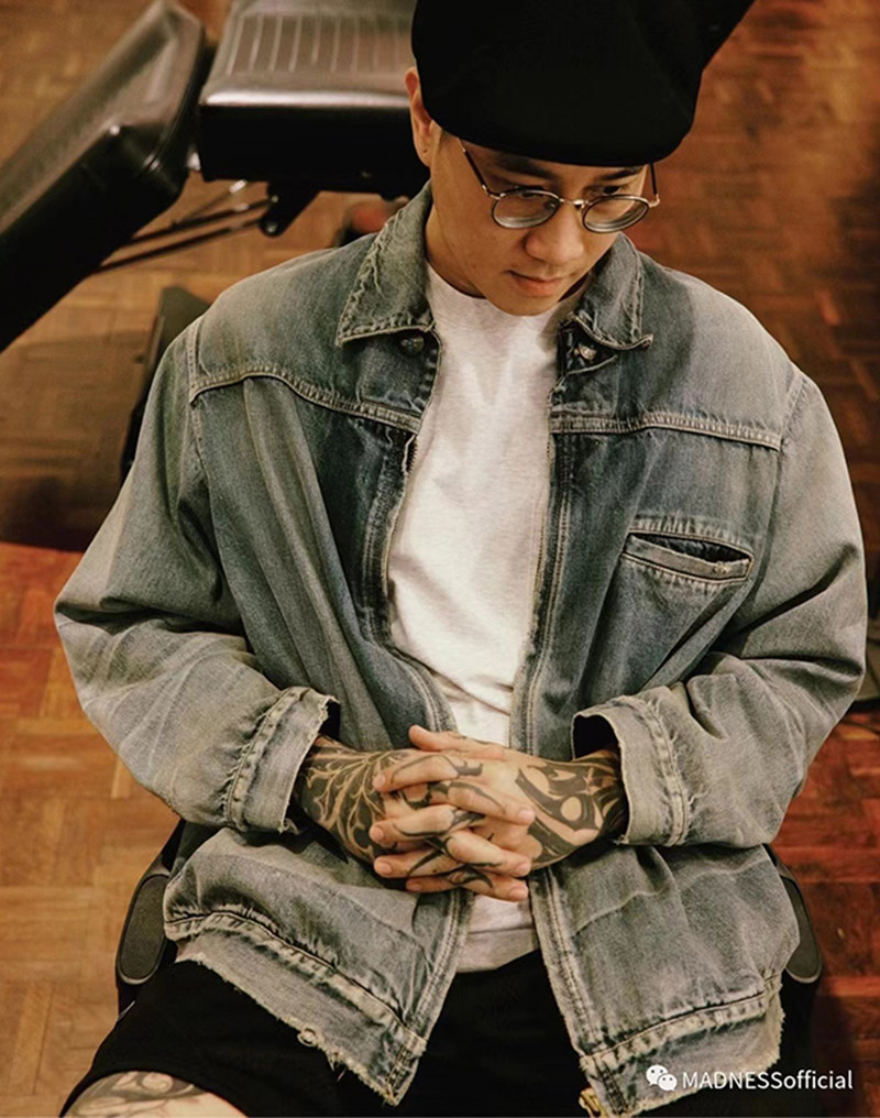 淘宝九川日潮,九川在制MADNESS ZIP UP DENIM JACKET 23SS日产水洗拉链牛仔夹克