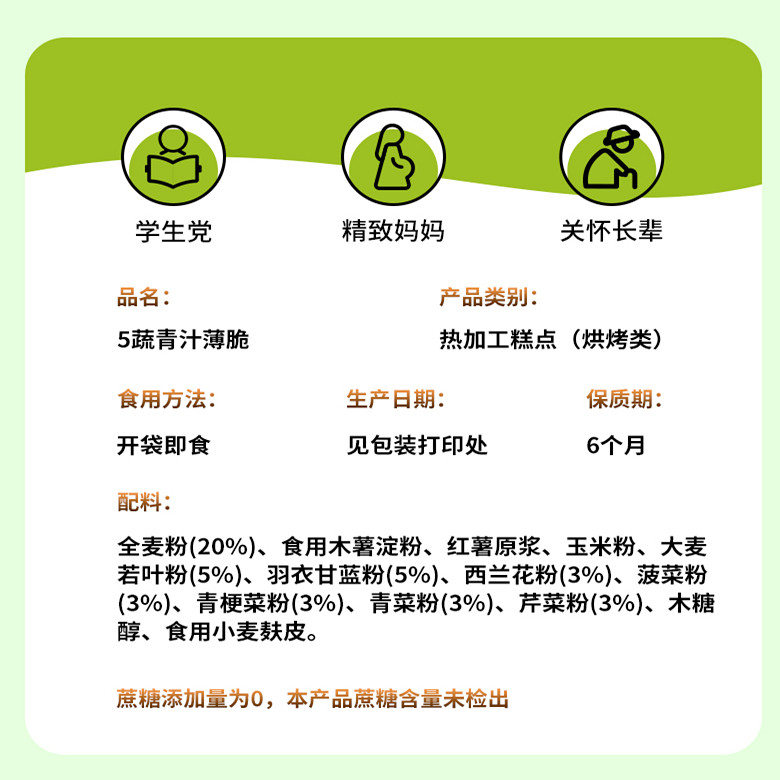 五蔬青汁薄脆 0脂肪无蔗糖全麦风吹饼干 青汁羽衣甘蓝5种蔬菜