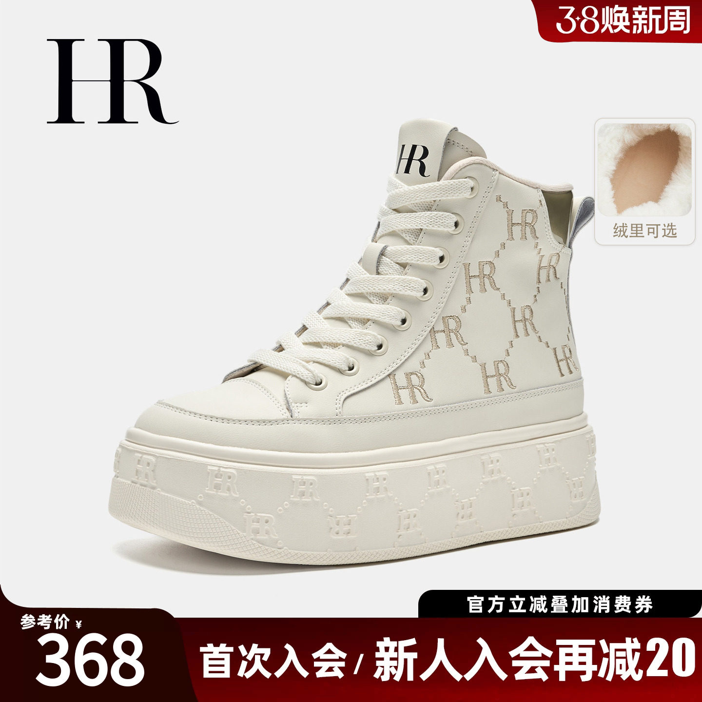 天猫HRCASUAL旗舰店,HR赫莲娜板鞋2026冬季新款高帮女鞋子厚底加绒加厚保暖百搭小白鞋