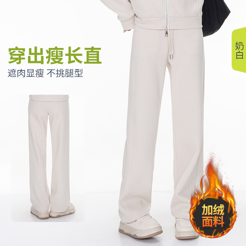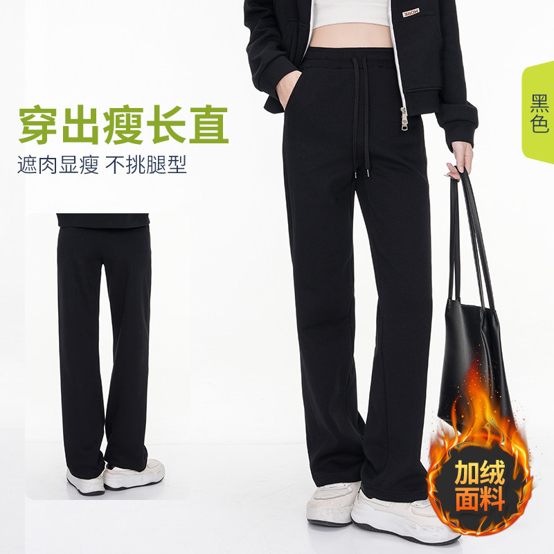 秋冬加绒显瘦高腰直筒裤