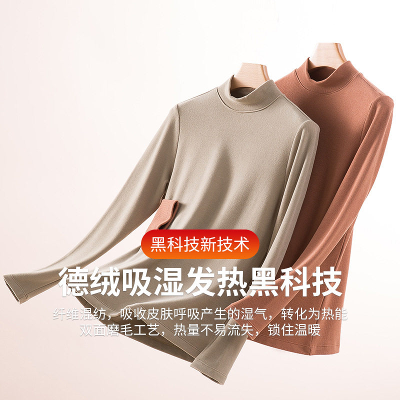 淘宝德绒保暖内衣工厂直销店,德绒双面磨毛半高领打底衫女