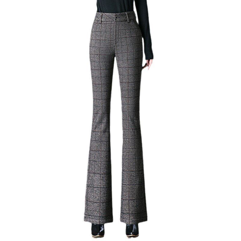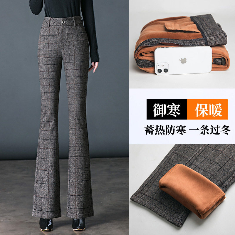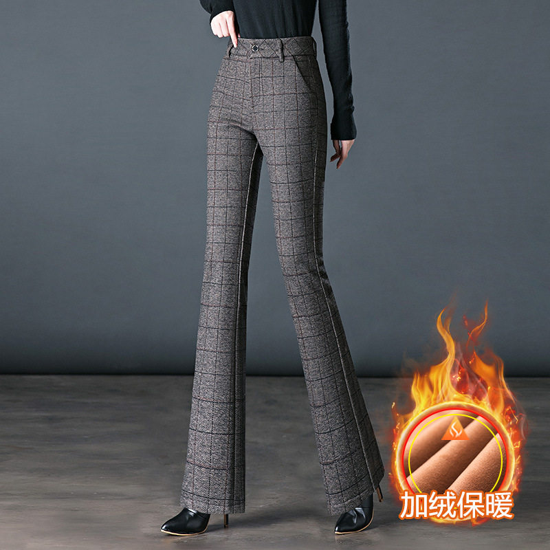 淘宝欣伊潮流品牌店,格子条纹喇叭裤女秋冬新款加绒加厚大码高腰显瘦复古休闲微喇裤子