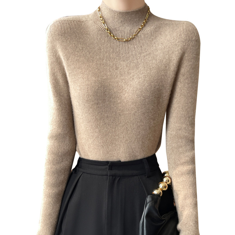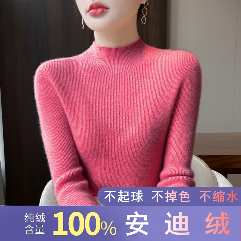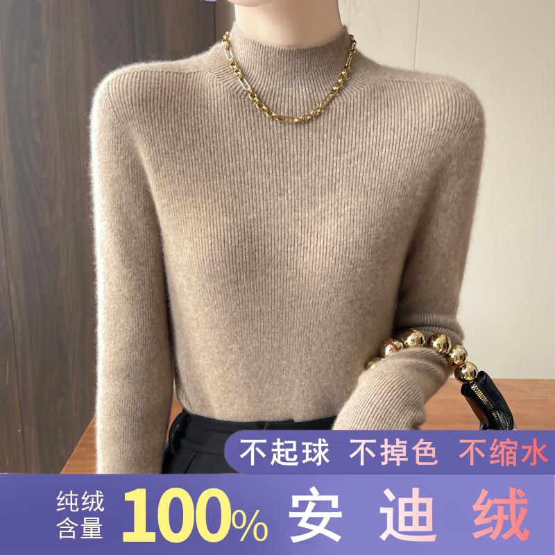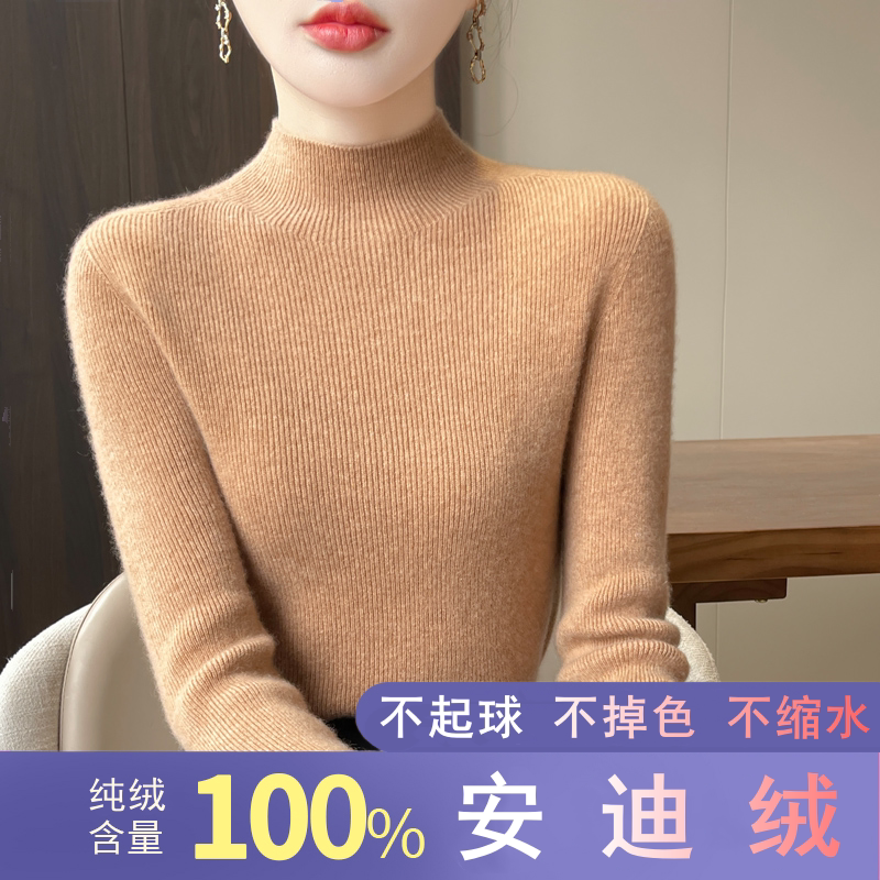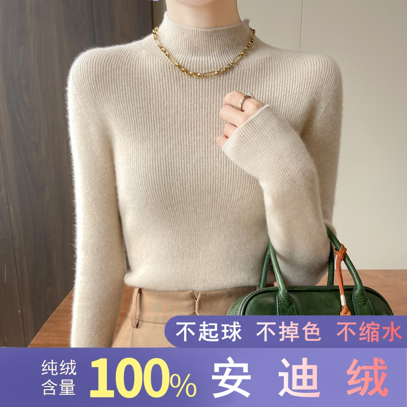 一线成衣安迪绒毛衣女秋冬修身显瘦半高领羊毛针织打底衫厚内搭