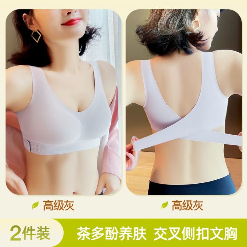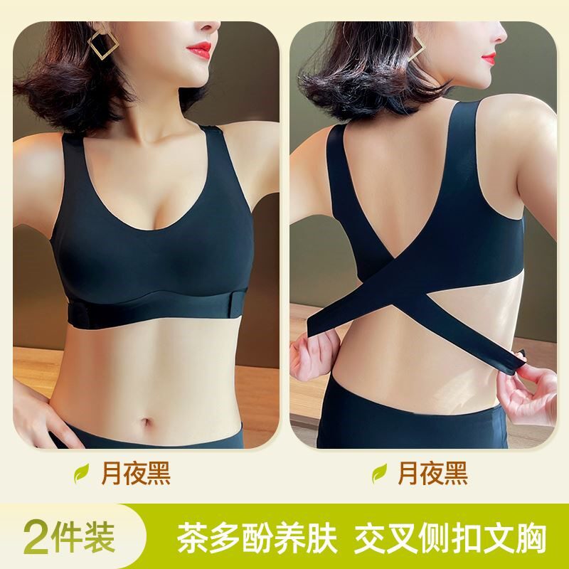 性感无痕无钢圈内衣交叉侧排扣聚拢托胸美背美胸提拉矫正运动文胸