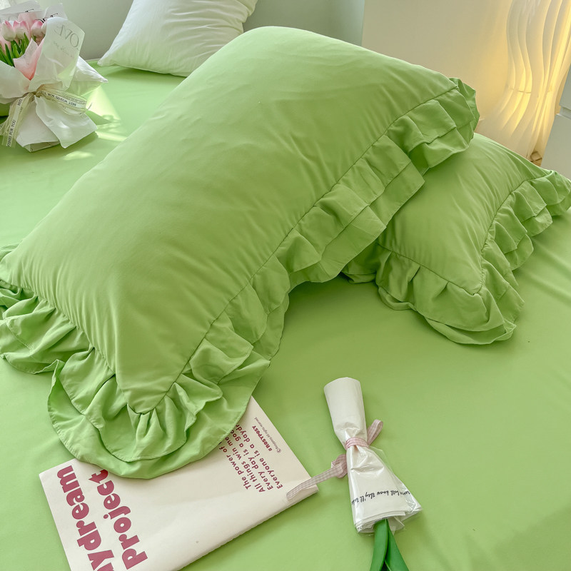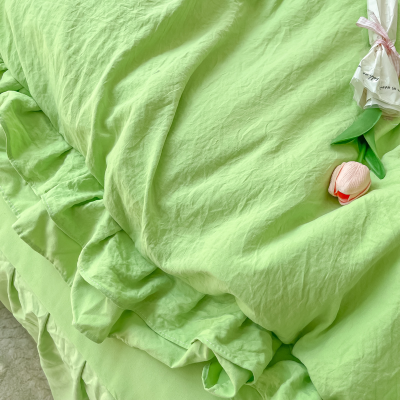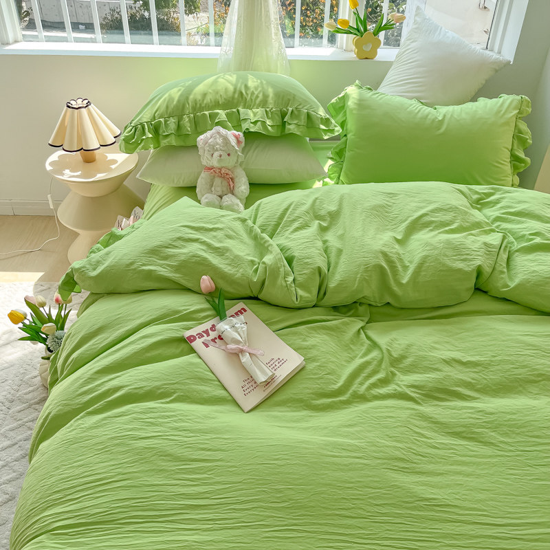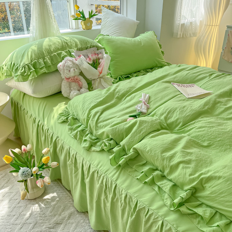 ins氛围感绿春秋双层花边水洗棉床裙款四件套少女心被套公主床品4