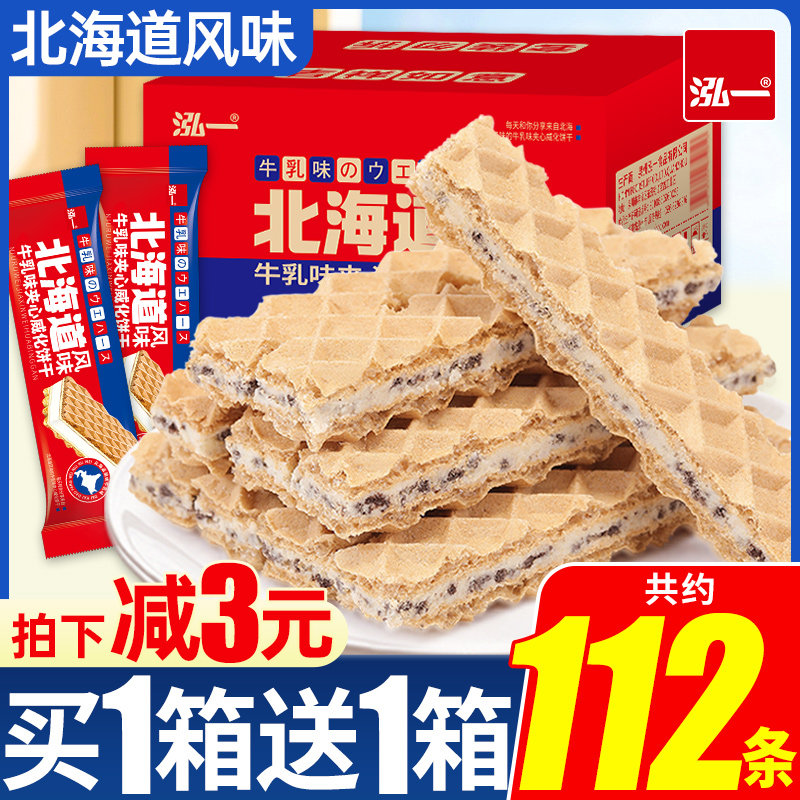 天猫泓一食品旗舰店,泓一北海道牛乳味夹心威化饼干整箱网红健康解馋零食小吃休闲食品