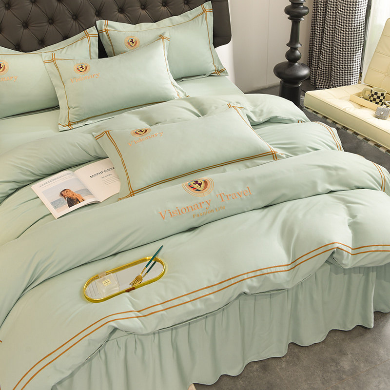 奢华高档纯棉水洗棉床裙四件套公主风双人被套防滑床套床罩三件套