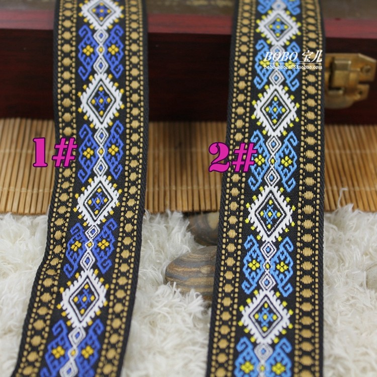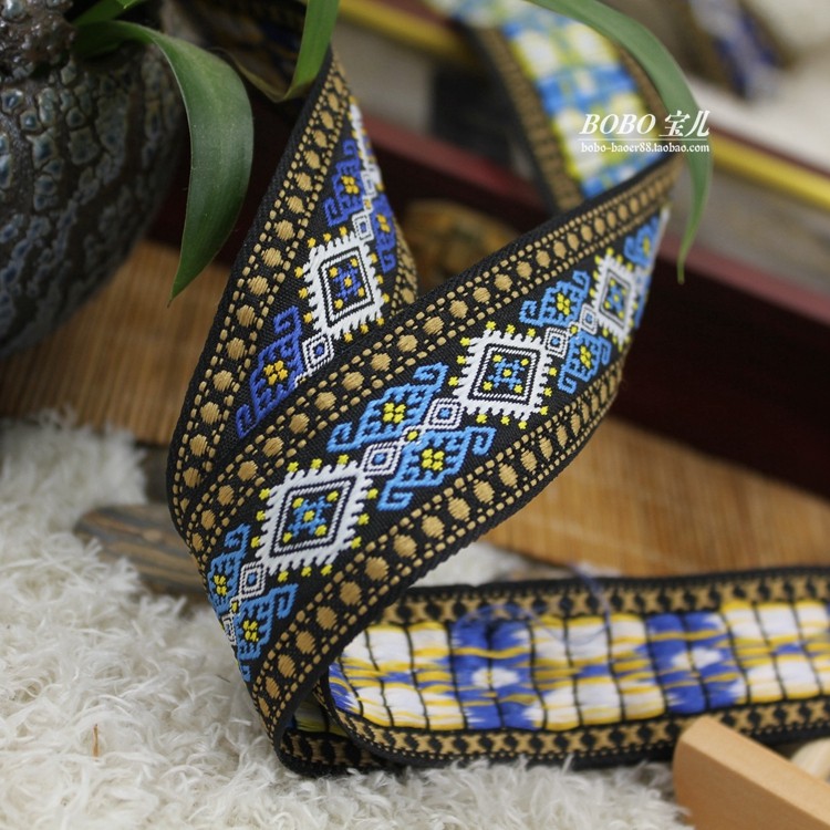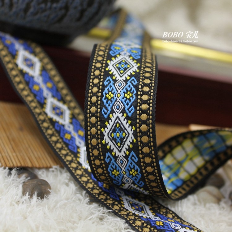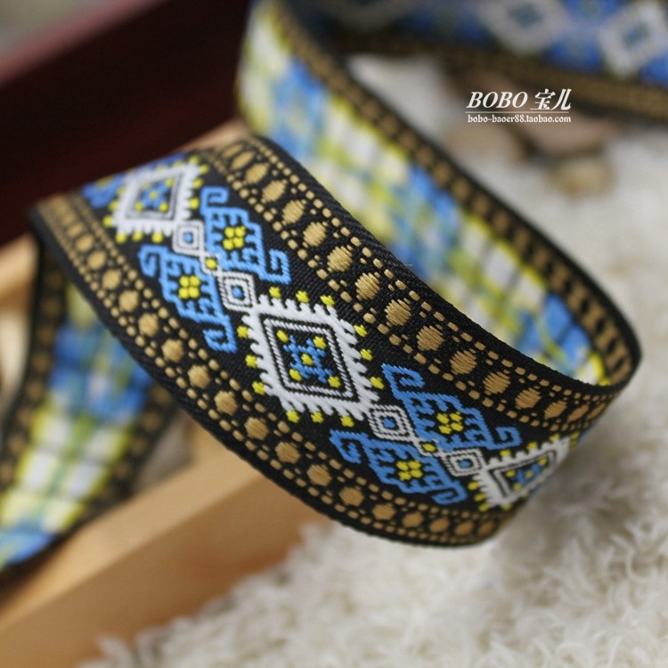 淘宝鳳碟結创意时尚,黑底几何图形民族花边服装辅料帽带
