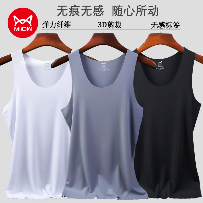 天猫世纪鼎龙服饰专营店,猫人背心大码莫代尔无痕背心男士,冰丝 无痕 透气