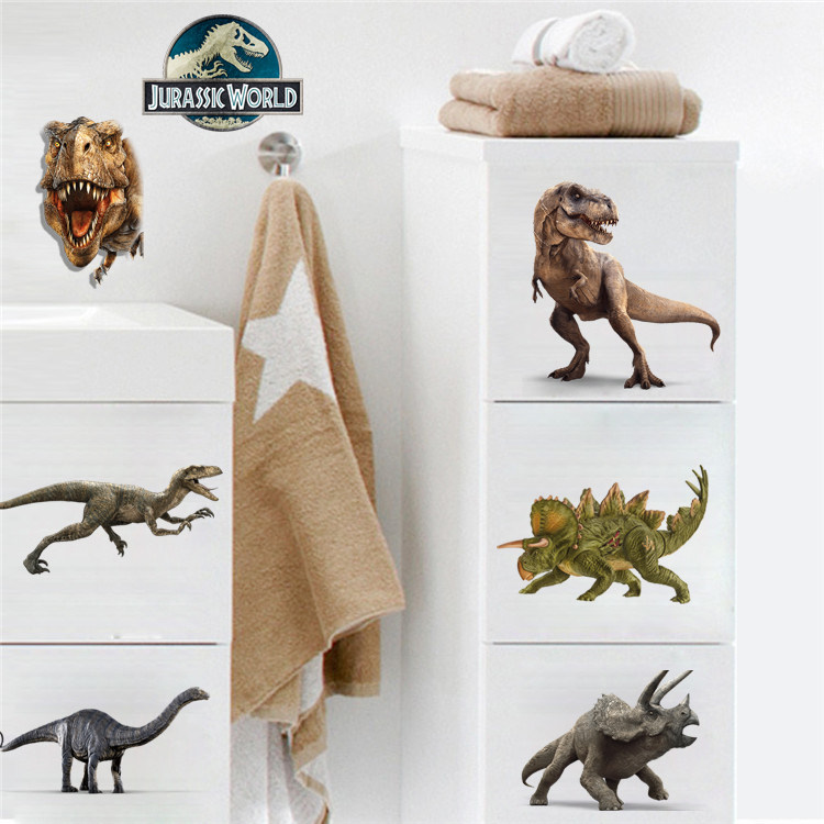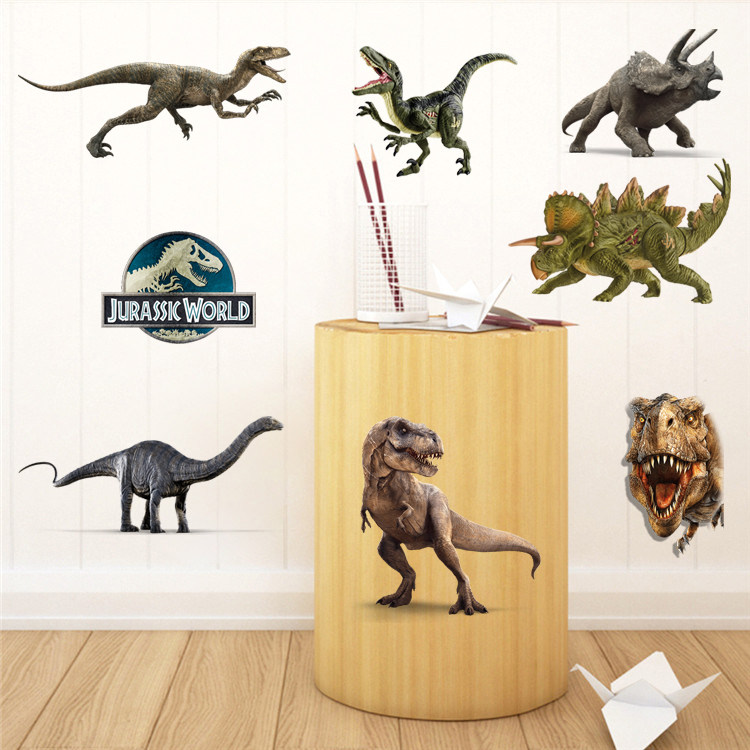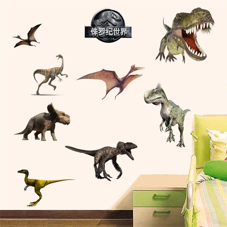 侏罗纪公园世界墙贴仿真恐龙暴龙卡通动漫儿童房防水玻璃装饰贴纸
