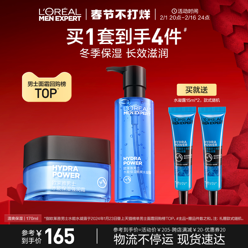 天猫欧莱雅男士官方旗舰店,欧莱雅男士水凝露面霜补水保湿爽肤水秋冬季水乳男士护肤套装,补水滋润 舒缓肌肤