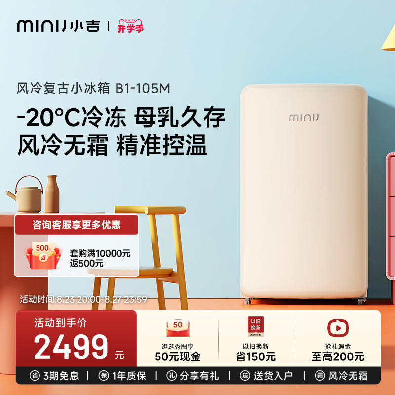 天猫小吉旗舰店,小吉minij单门复古宿舍小冰箱,低噪节能 风冷无霜 精准控温 分区储存