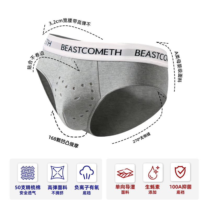 天猫野兽来了旗舰店,男士纯棉三角裤100A抗菌生蚝养护,100A抗菌生蚝养护按摩颗粒三角裤礼盒装