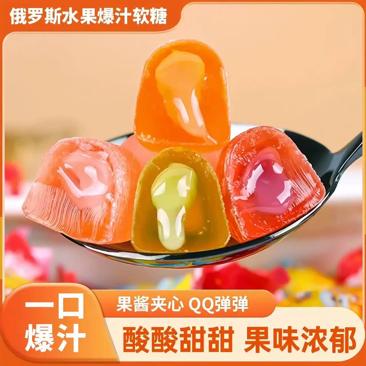 淘宝爆品易选企业店,小蜜蜂夹心软糖俄罗斯水果风味果汁喜糖爆浆年货休闲零食批发糖果