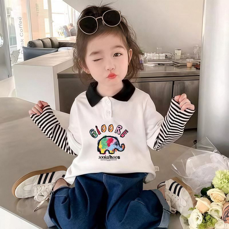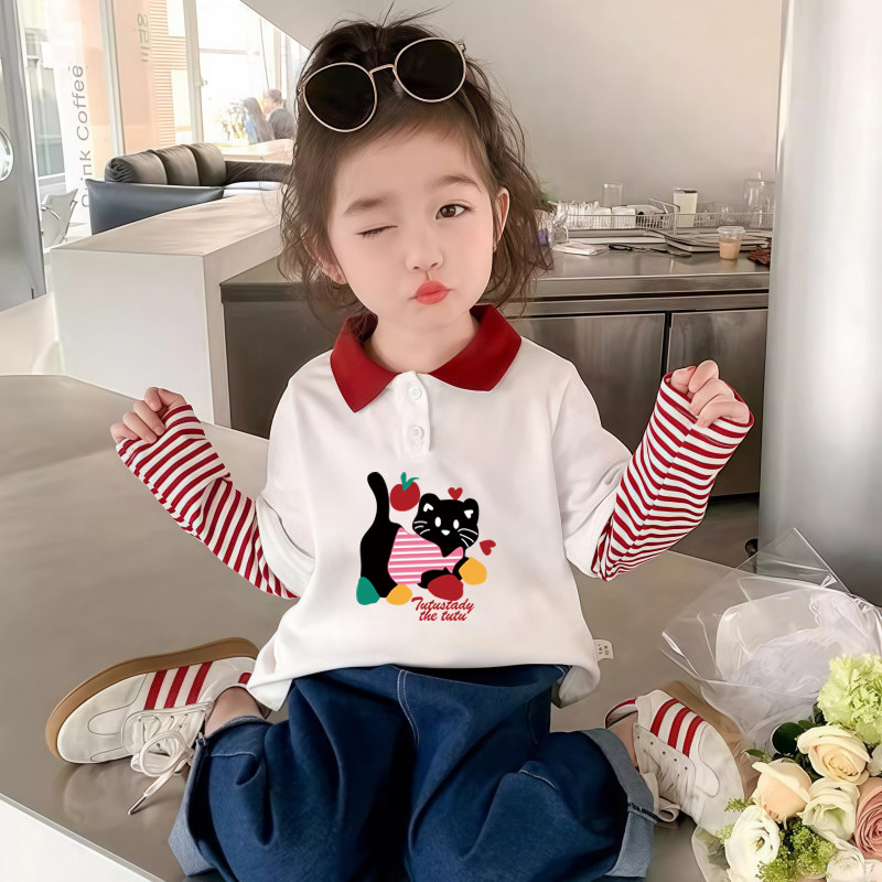 淘宝baby潮童屋,纯棉女童假两件长袖t恤春秋款卡通凯蒂猫儿童POLO衫宝宝洋气上衣T