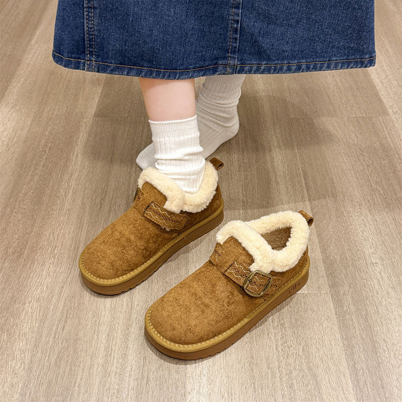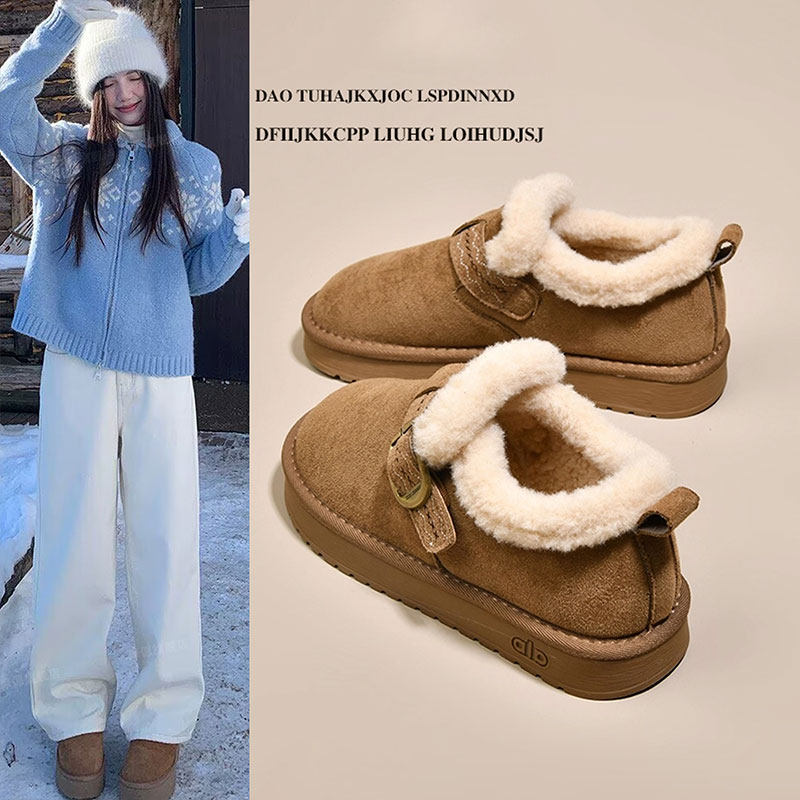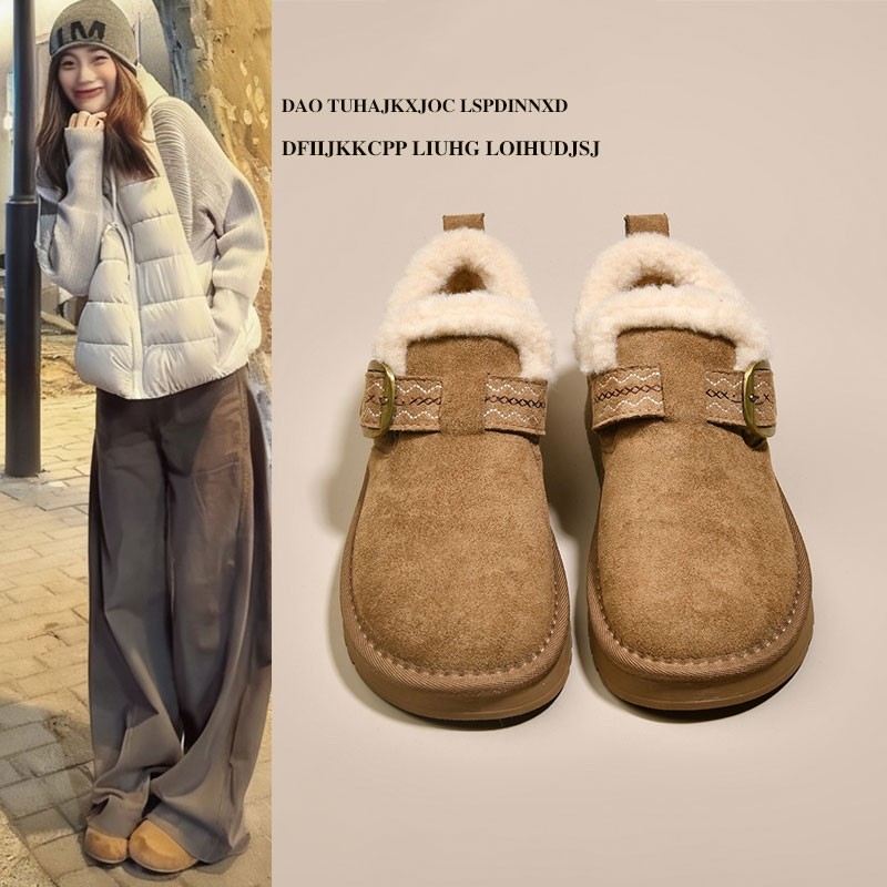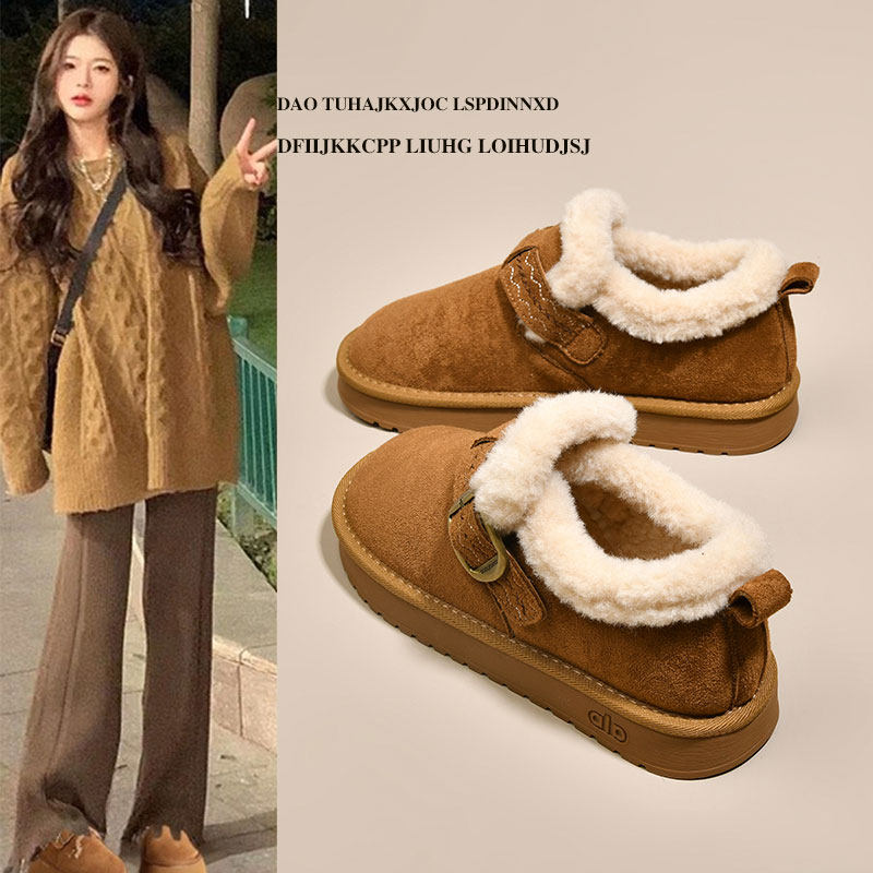 天猫淘工厂美妆直营,平底加绒保暖全包勃肯鞋毛毛棉鞋女2025新款冬季雪地靴乐福豆豆鞋