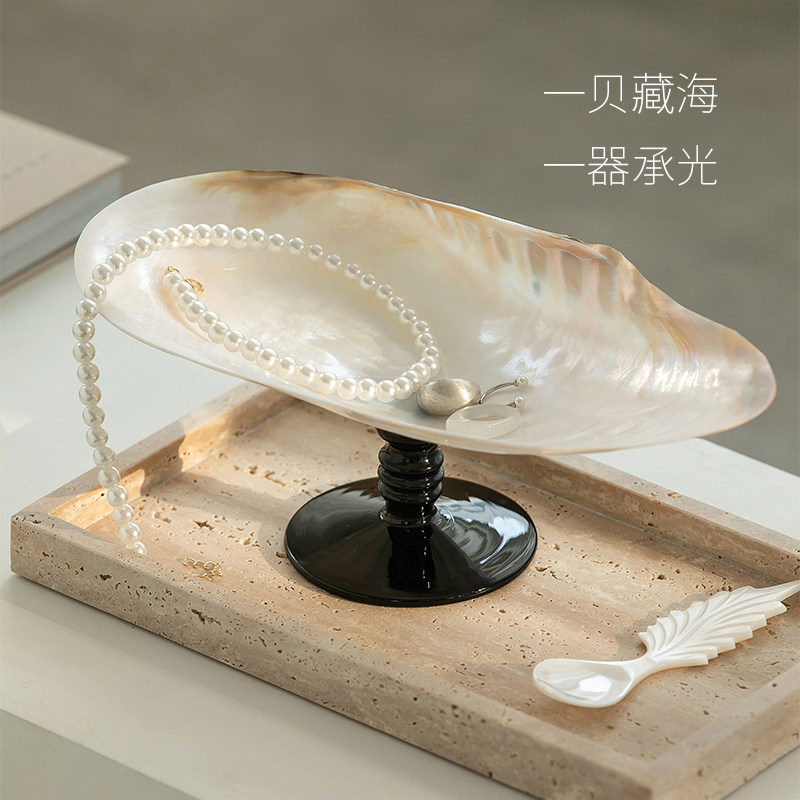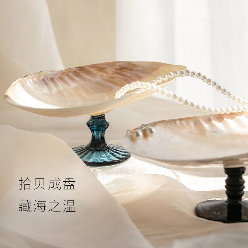 淘宝木屿栖家居,法式贝壳首饰收纳盘家用珍珠饰品高脚托盘轻奢桌面玄关家居摆件