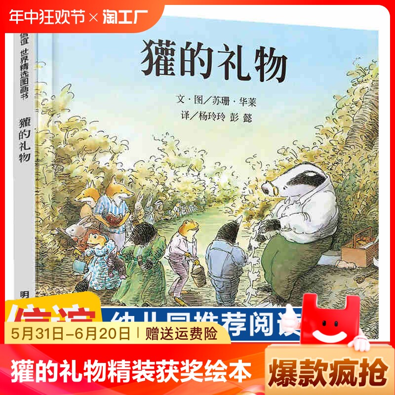 天猫天天特卖工厂店,獾的礼物正版包邮精装荣获英国鹅妈妈童书奖明天出版社0-3-4-5-6岁少儿童启蒙绘本故事读物书籍一二三四年级课外书非注音