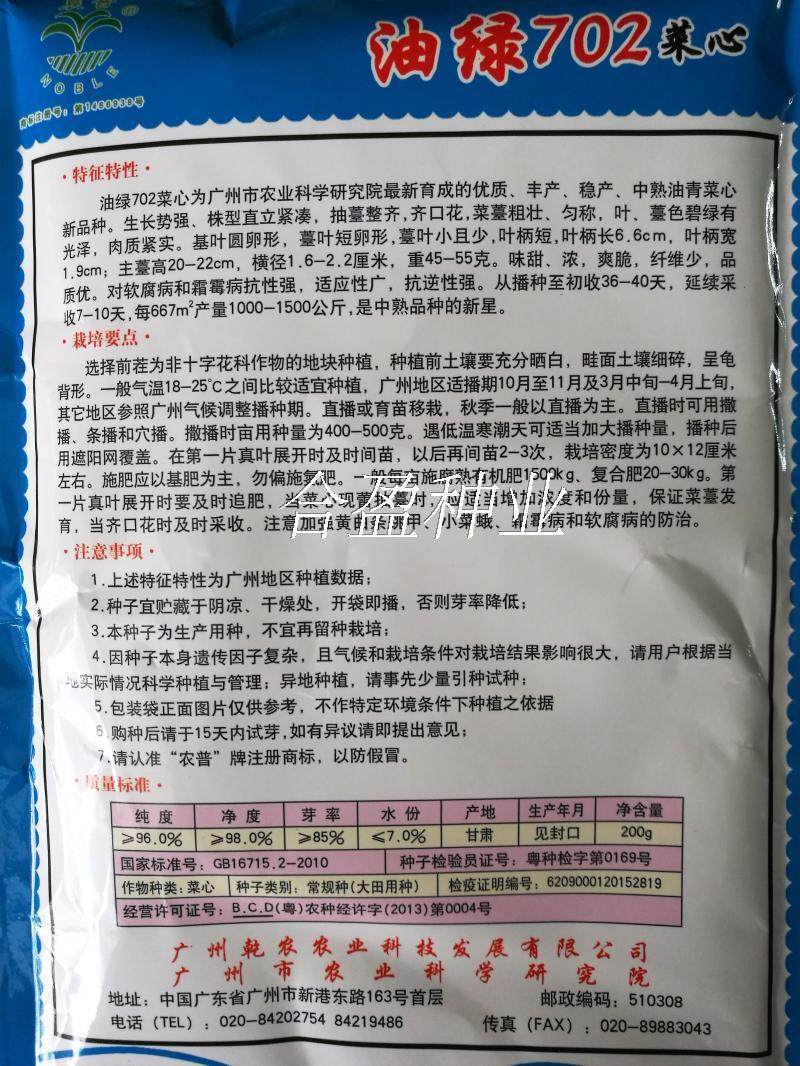 淘宝广州合盈种业,200克广州农科所选育农普油绿种子