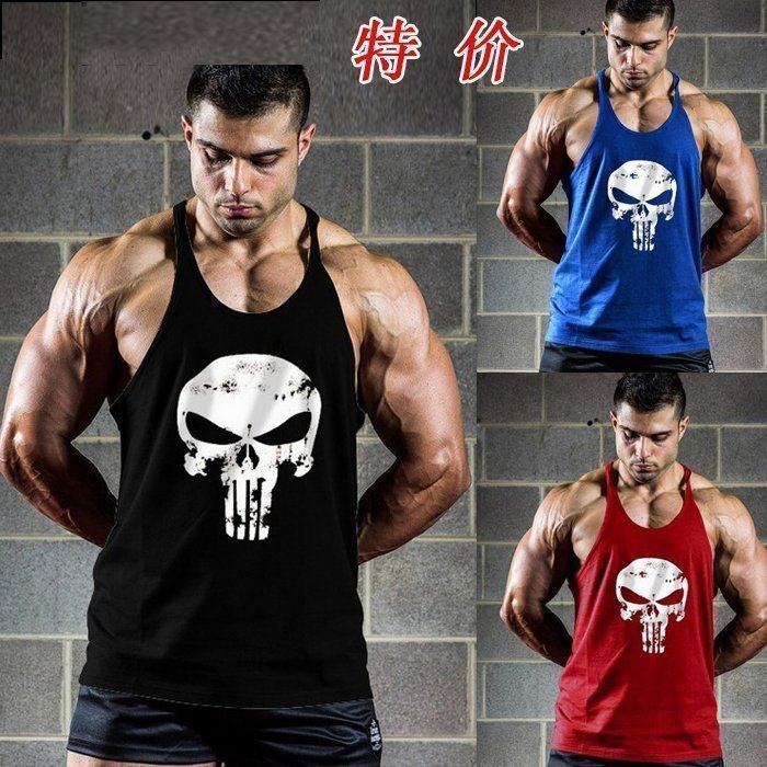 淘宝衣号工厂,特价骷髅头细带健美夏季男式棉背心