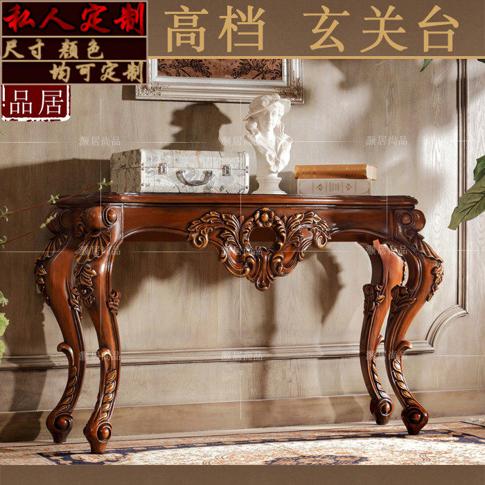 淘宝流金企业店,美式实木玄关桌门厅桌高端复古雕花客厅装饰桌靠墙桌玄关台定制