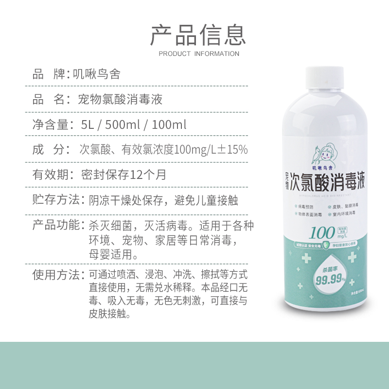淘宝叽啾鸟舍,叽啾鸟舍 宠物次氯酸消毒水 鸟笼清晰消毒水