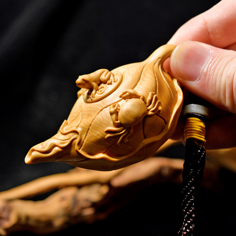 淘宝匠心志,螃蟹纵横四海黄杨木雕刻手把玩件壶