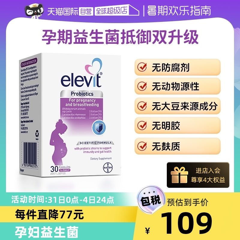 天猫国际自营进口超市,elevit澳洲益生菌孕期哺乳期叶酸,孕期益生菌孕妈肠轻松 调节肠胃