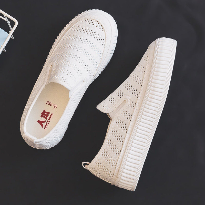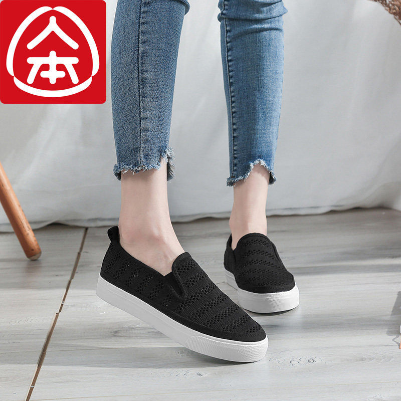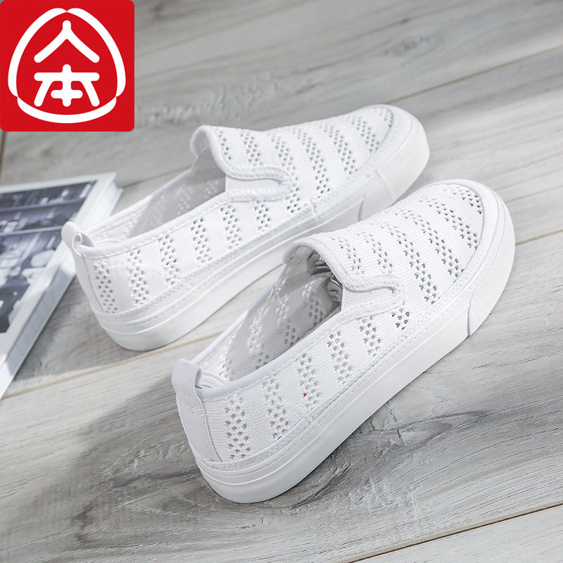 淘宝千行鞋类企业店,人本懒人鞋女一脚蹬平底鞋2020新款小白鞋镂空休闲百搭透气网鞋女
