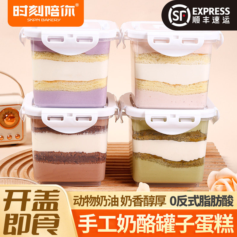 天猫时刻陪你旗舰店,时刻陪你黑巧克力抹茶芋泥奶酪网红甜品千层可可脂奶油盒罐子蛋糕