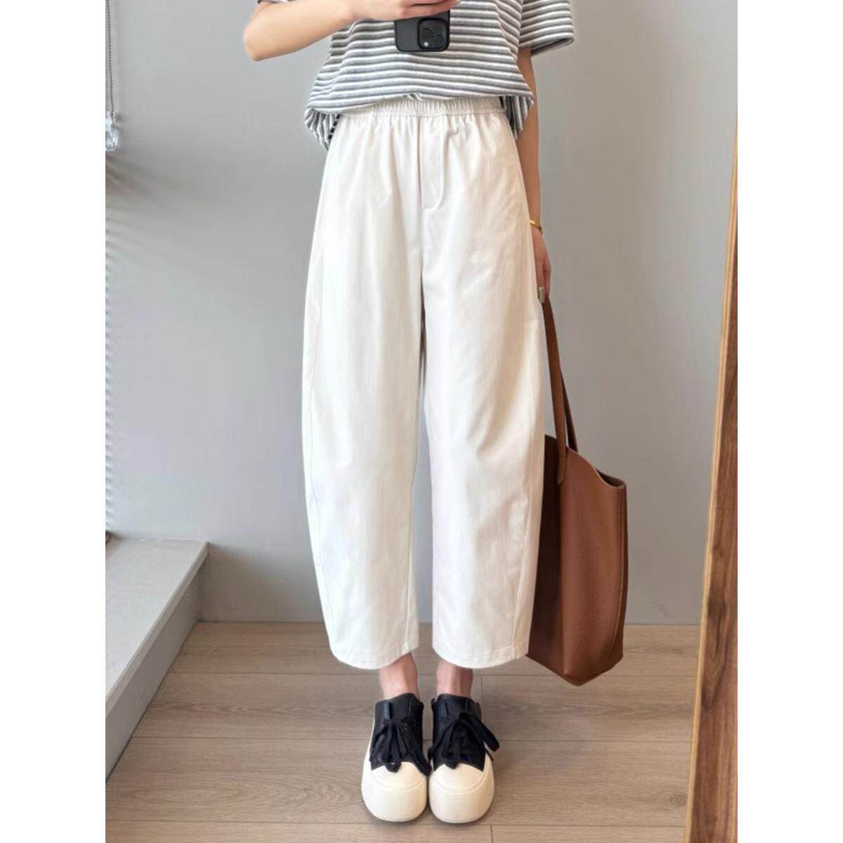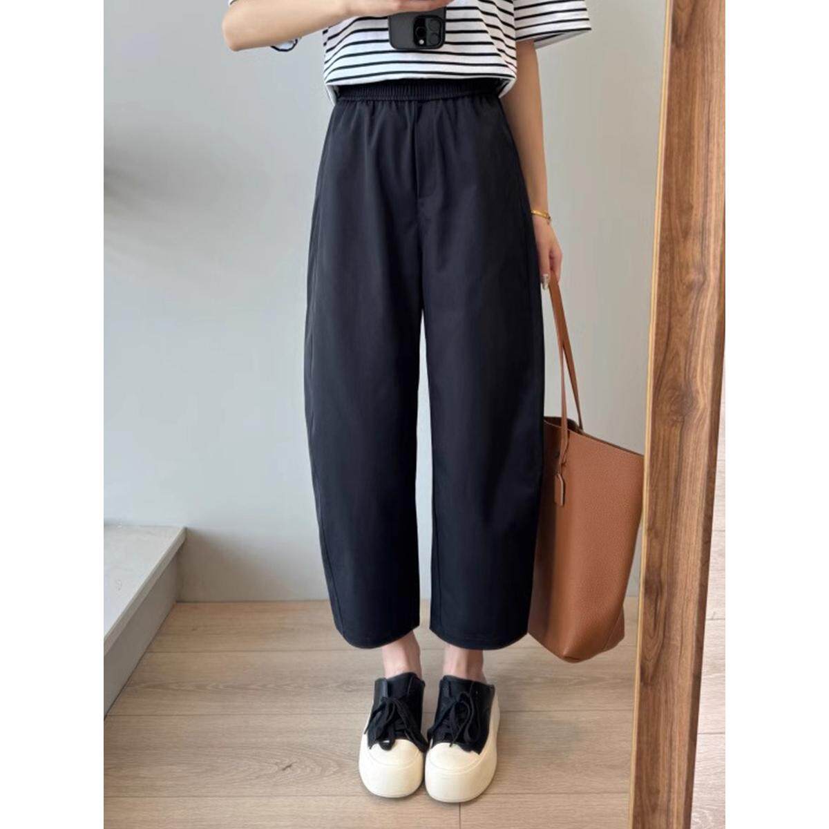 大码女装夏季薄款松紧腰胖妹妹mm显瘦九分休闲哈伦裤子200斤潮