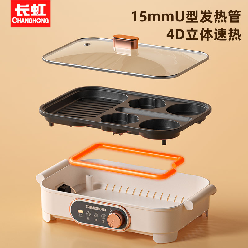 天猫长虹挺铭专卖店,长虹多功能料理锅家用早餐机,长虹六合一多功能煎锅煎鸡蛋汉堡机