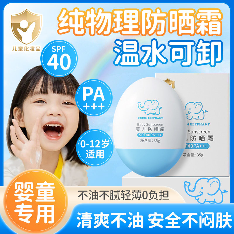 天猫小波象旗舰店,【温水可卸】婴童专用物理防晒霜,儿童防晒霜婴幼儿宝宝夏季物理防晒乳男女童