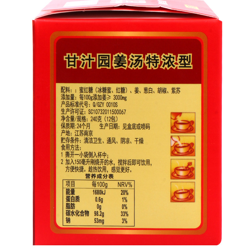甘汁园红糖姜茶20g*12袋大姨妈产妇月子特浓姜汤冲饮独立小包装