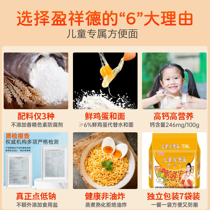天猫盈祥德旗舰店,盈祥德儿童高钙方便面袋装非油炸营养低钠鲜鸡蛋宝宝面条速食泡面