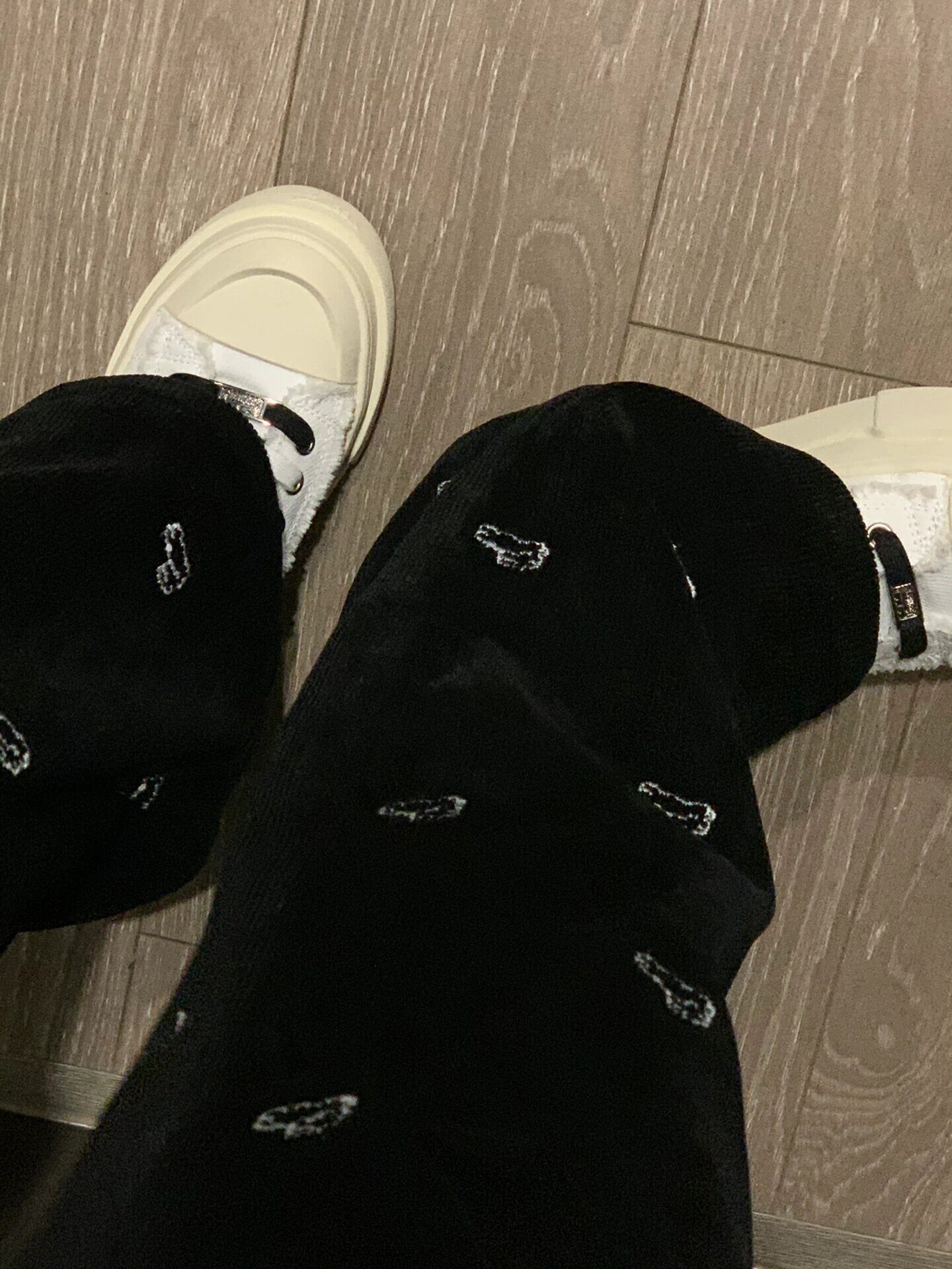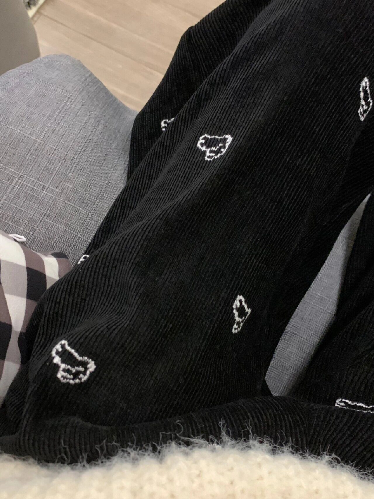 天猫香百薇旗舰店,黑色手绘兔子雪尼尔阔腿裤女秋冬