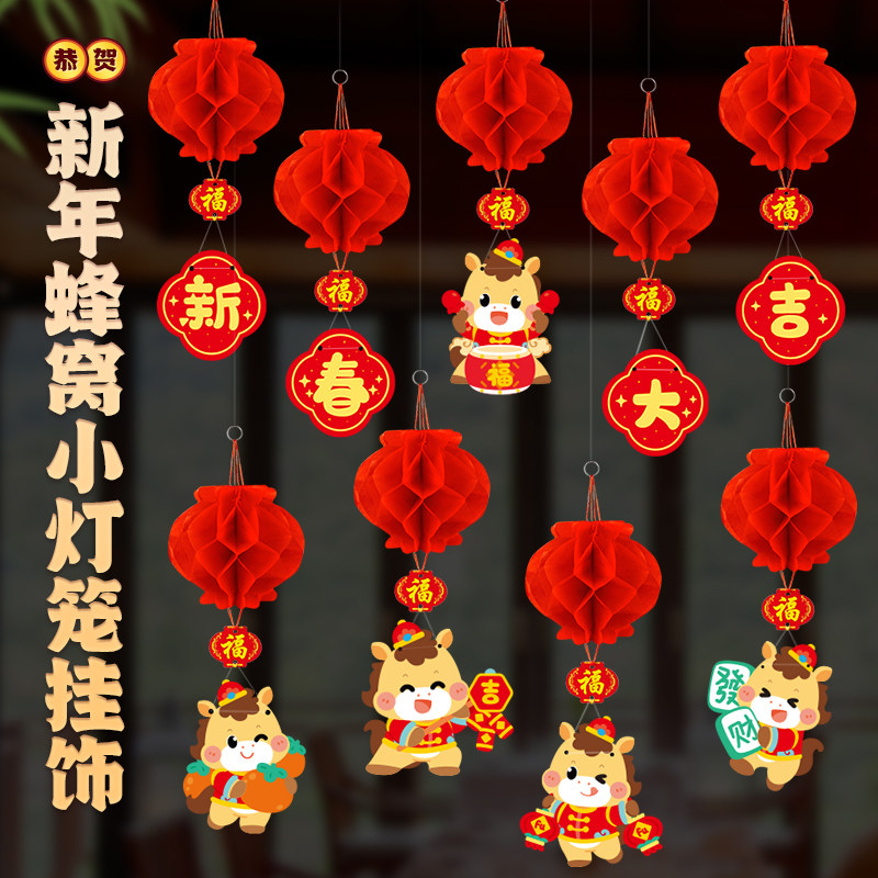 天猫绮兰朵家居旗舰店,新年拉旗小灯笼挂饰装饰品,蜂窝小灯笼挂饰 双面印刷高清图案