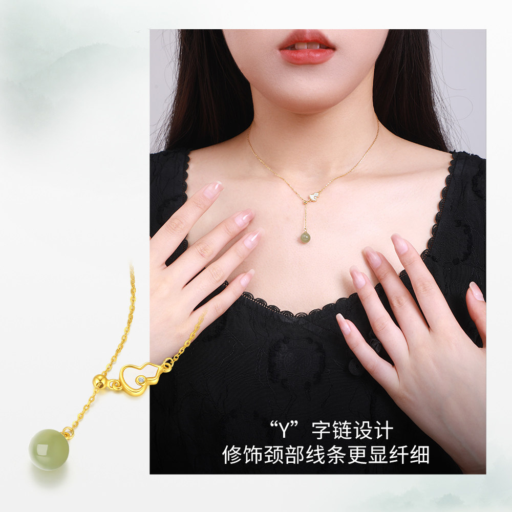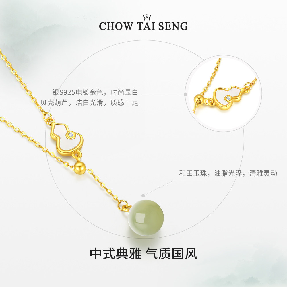 天猫周大生饰品旗舰店,周大生纯银小福禄锁骨链,经典葫芦造型,国风感十足