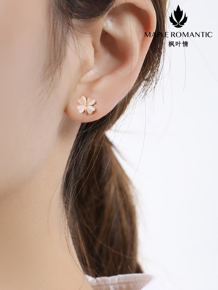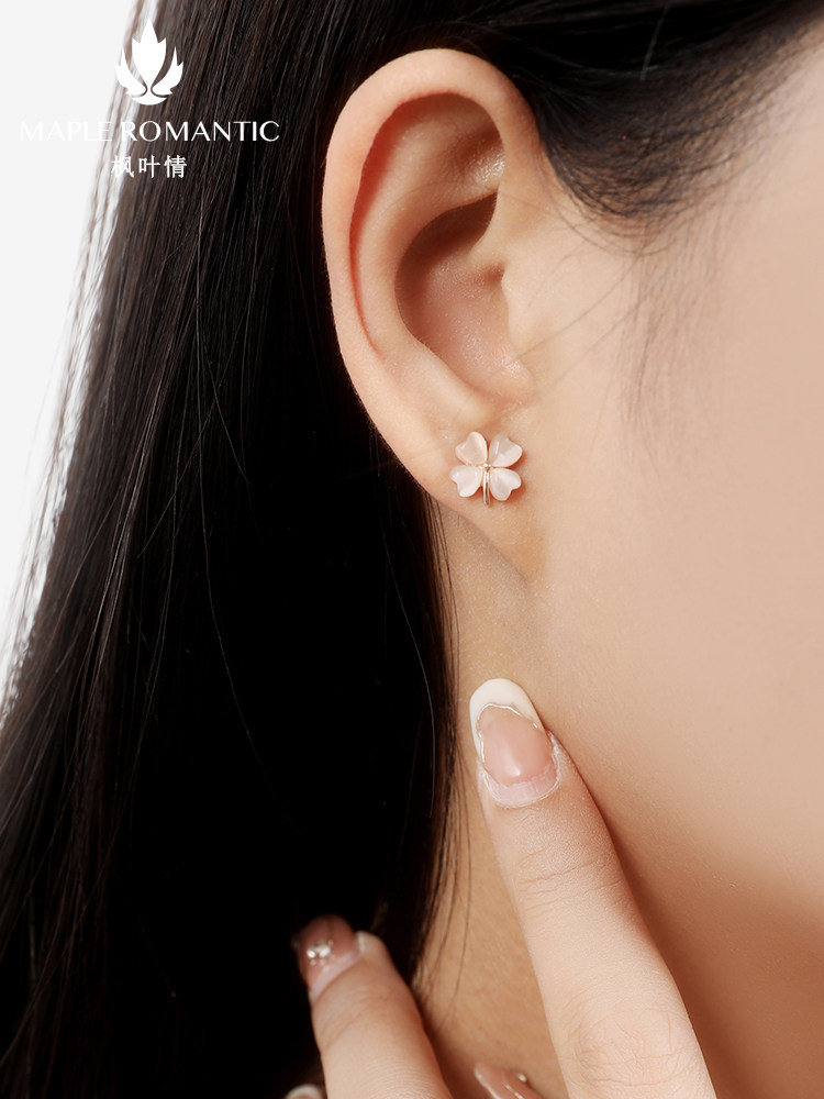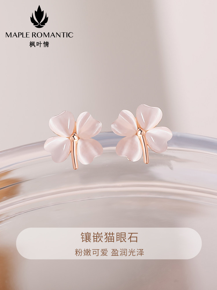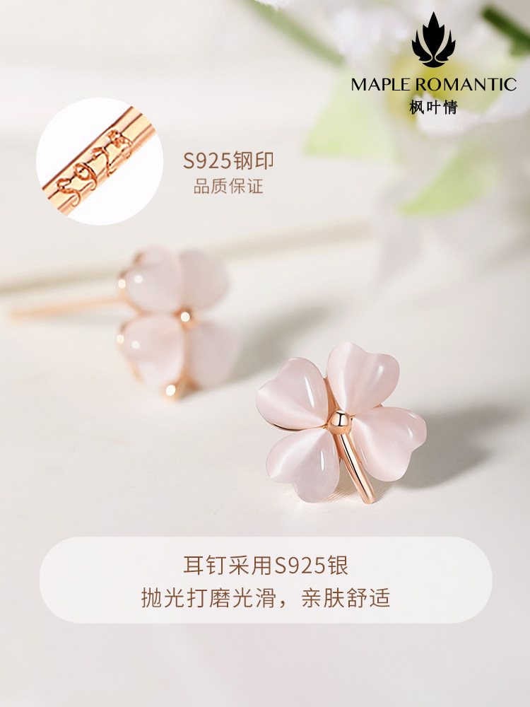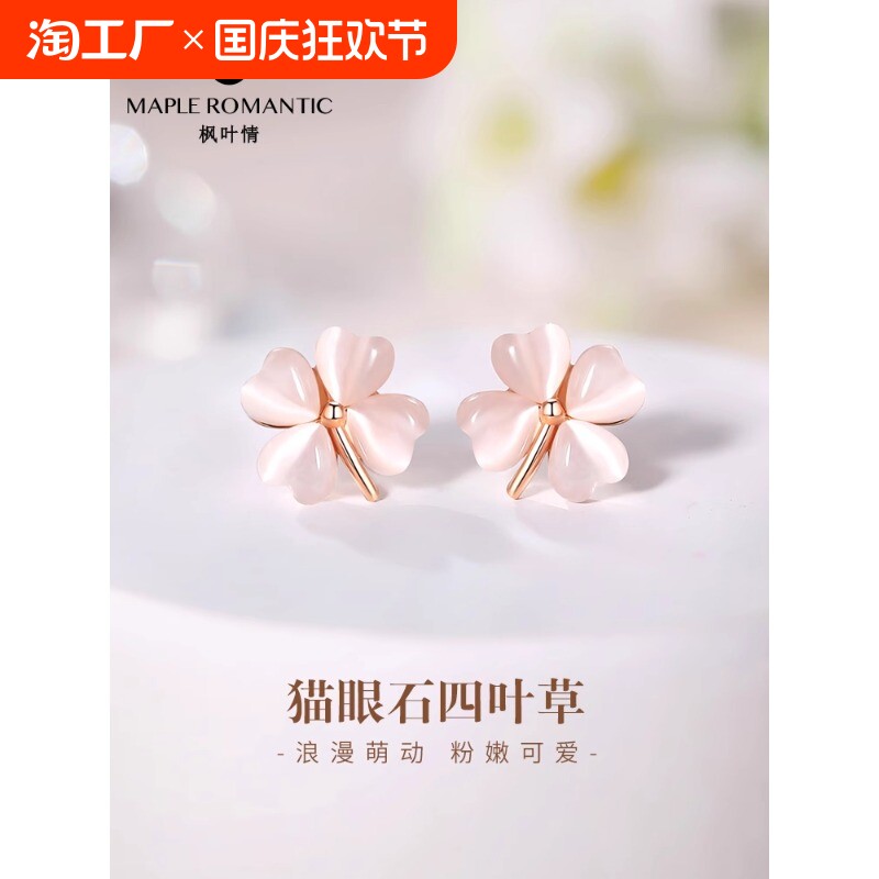 天猫天天特卖食品直营,四叶草s925银耳钉轻奢洋气猫眼石耳环简约款小众设计感银针银耳饰,甄选925银材质 猫眼石材质 精美礼盒包装