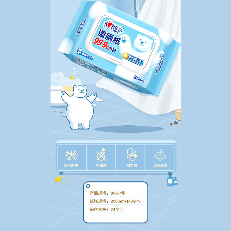 淘宝彩云纸品,心相印私处清洁80片便携式湿厕纸