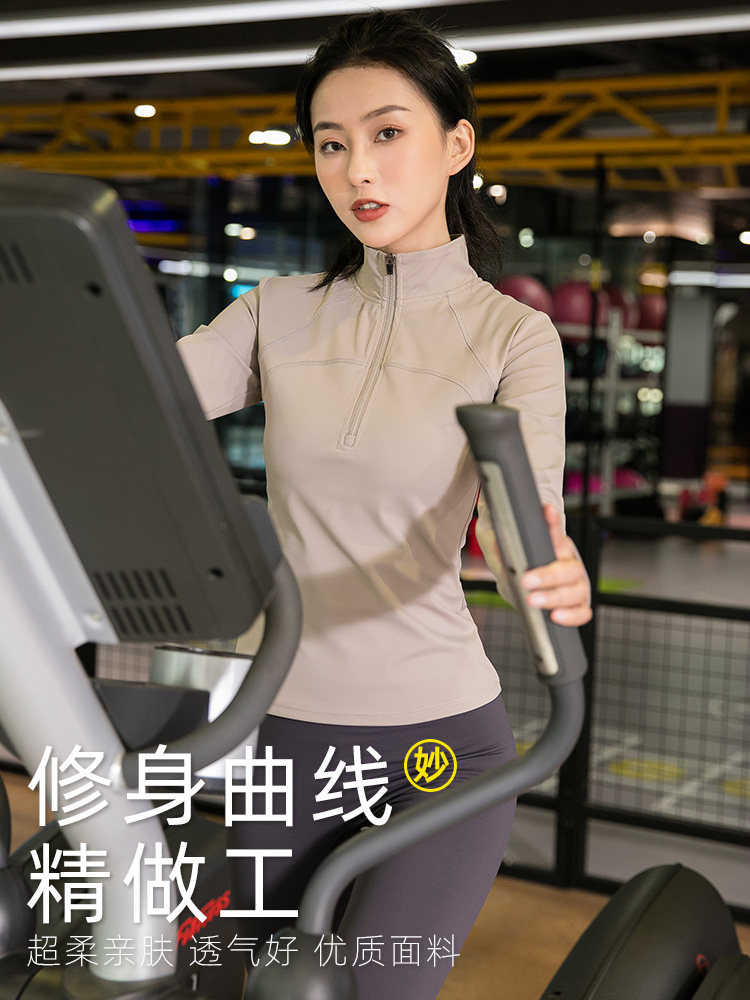 高级感半拉运动外套女2023秋冬紧身速干瑜伽健身服晨跑步上衣长袖