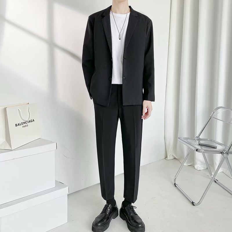 高级感春季休闲西装外套男韩版宽松帅气痞帅潮流轻熟秋季西服套装
