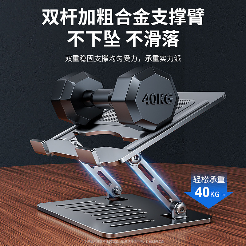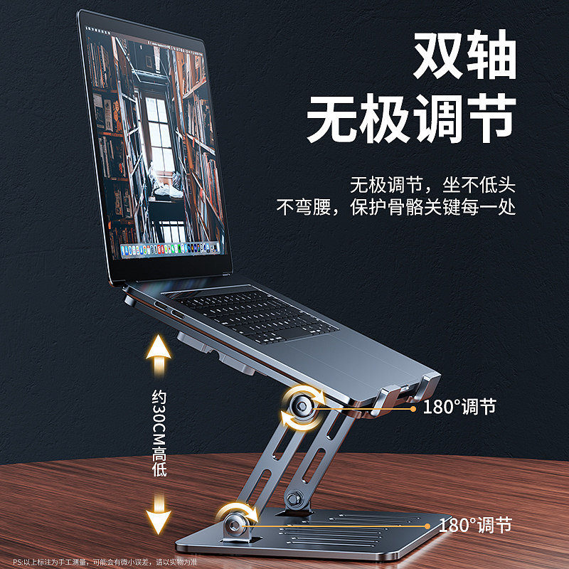 天猫天天特卖工厂店,2024新款笔记本支架桌面悬空散热器底座铝合金增高架平板电脑折叠可调节升降旋手提便携站立式支撑架带风扇属,全金属加固,打字不晃动