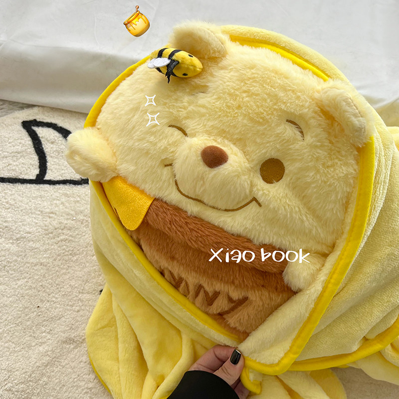 卡通噗噗熊毛绒午睡抱枕毯子空调被子二合一玩偶女生两用生日礼物