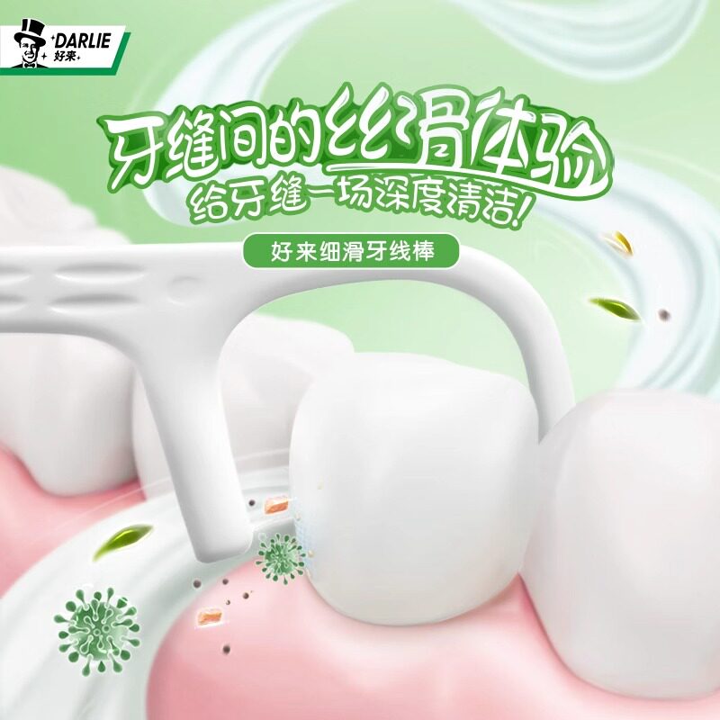 天猫DARLIE好来笑心乐专卖店,好来细滑牙线棒剔牙线家庭装盒装,bf32 纤细易入呵护牙龈 高拉力不易断 深洁