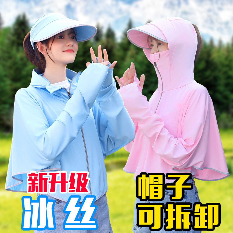 天猫倩茹纤旗舰店,2022夏新款骑车冰丝防紫外线防晒衣,新升级新款可拆卸帽子,大帽檐遮阳防晒衣